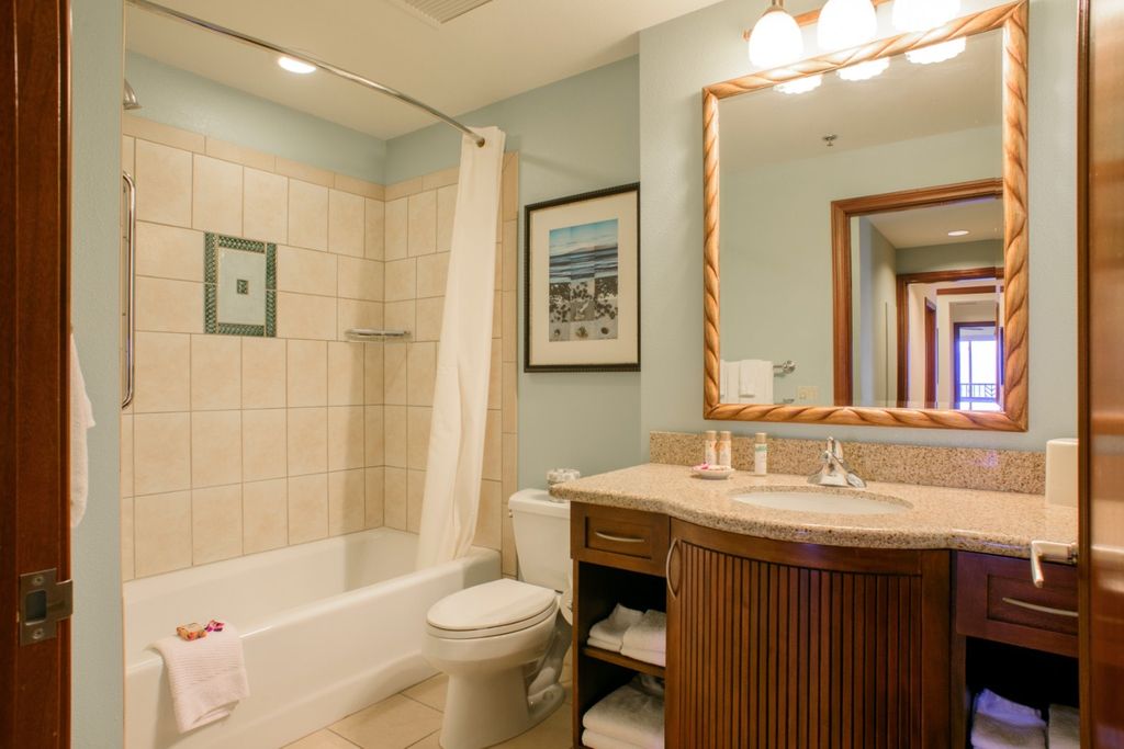 The full-service resort boasts 2 lagoon style pools, a massive 3.5 acre super-pool with waterfalls and watersides, jacuzzis, and a pirate ship area for the kids. The amenities include mid-week clean up service, pool towel service, exercise facilities, and concierge. Spa services and valet parking are also available for a fee. There are three restaurants located on the property serving breakfast, lunch, and dinner. Food and drinks are also available at the pool and beach. There are grills/dining areas downstairs throughout the property, and guests use them to prepare dinners and dine al fresco on the beach.